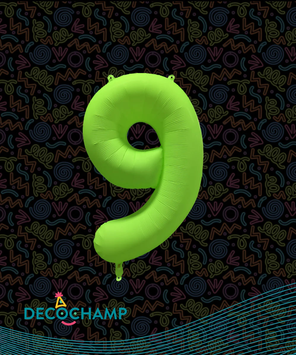 - Large number 9 foil balloon in neon green