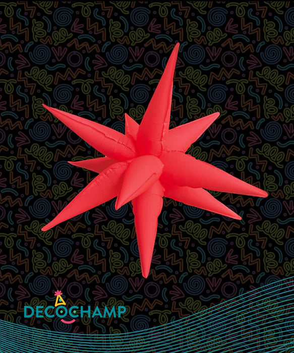 Pair this neon red starburst balloon with other neon colors and sizes to create a dazzling and modern decoration arrangement.