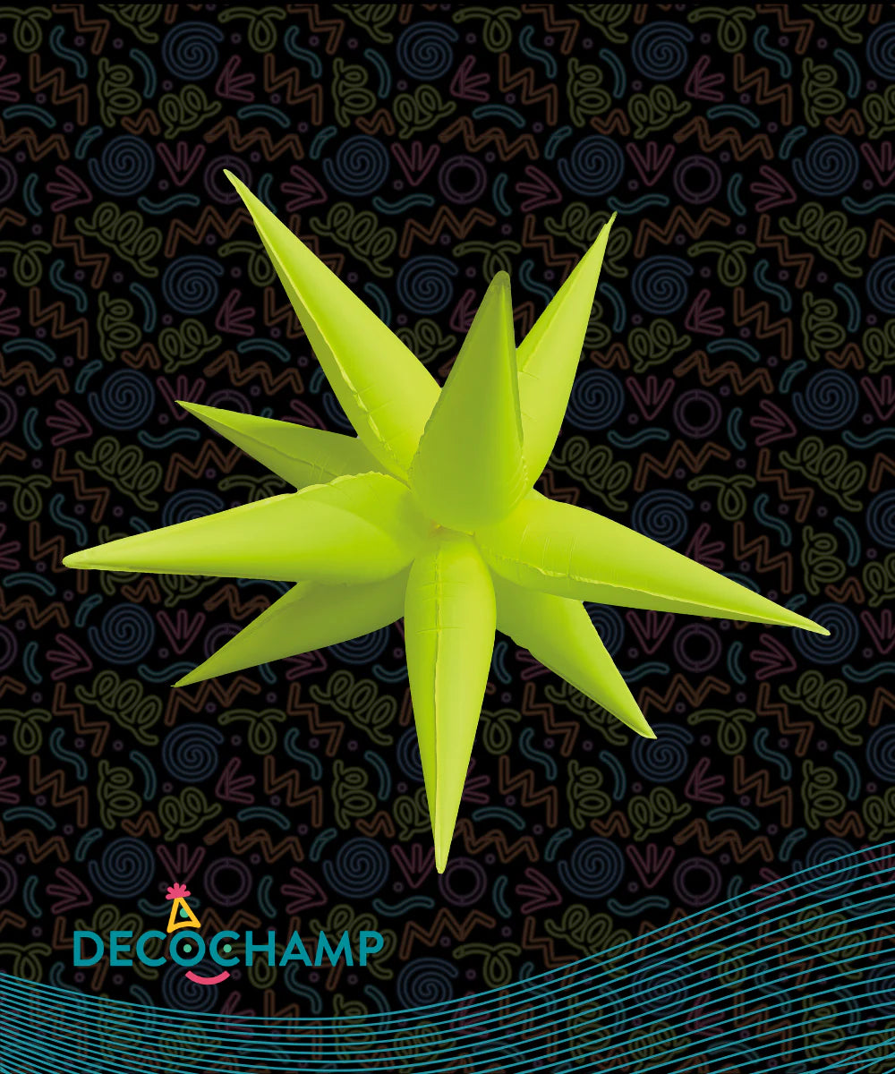Combine this neon yellow starburst balloon with other neon colors and different sizes to create a spectacular balloon arrangement that stands out.