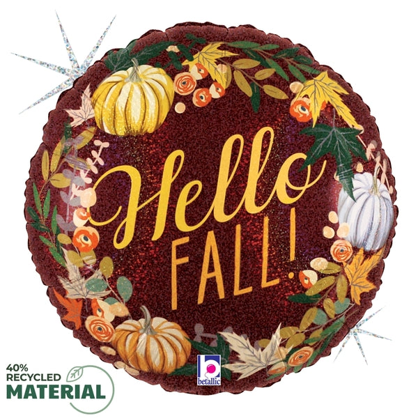 Welcome the season in style with this warm and festive Hello Fall Balloon!