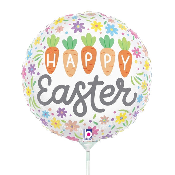 Add a cheerful spring touch with the Mini Happy Easter Carrots Foil Balloon 22575. This 9-inch Betallic mini shape features a colorful carrot and floral pattern with “Happy Easter” lettering — perfect for baskets, centerpieces, party favors, and kids’ Easter celebrations.