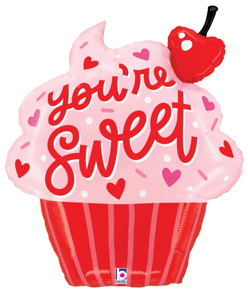 Brighten someone’s day with the You’re Sweet Cupcake 30-inch Large Shape Foil Balloon by Betallic. Designed as an adorable pink cupcake topped with a cherry and sweet heart accents, this balloon is perfect for Valentine’s Day, birthdays, and sweet surprises.