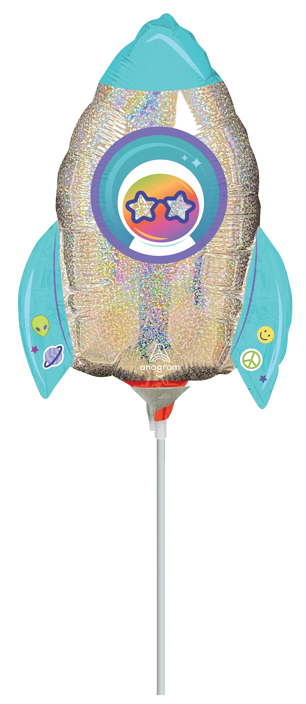 Take your party out of this world with the 14-inch mini rocket balloon by Anagram. This colorful outer space-themed balloon is shaped like a rocket ship and features a smiling astronaut — perfect for space parties, kids’ birthdays, or balloon bouquets.