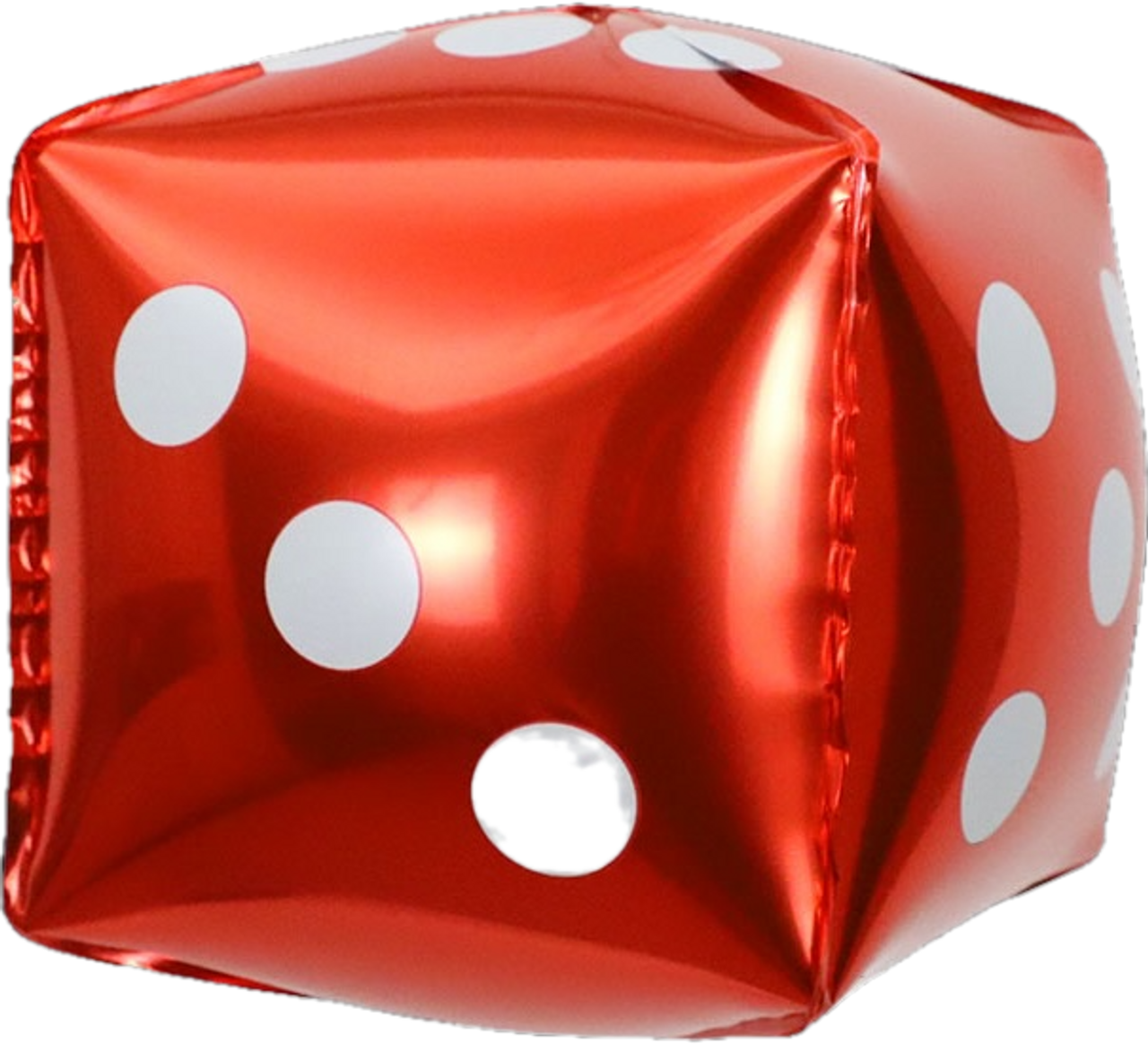 Bring the fun of the game to your party with this bold red dice foil balloon. Designed in the shape of a dice with white dots, this balloon is perfect for casino nights, Las Vegas themes, game nights, or birthday celebrations with a playful twist.