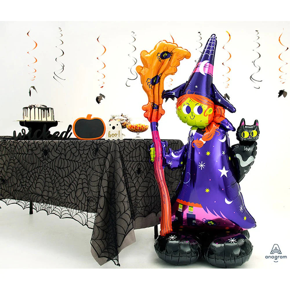 - AirLoonz foil balloon featuring a colorful witch and cat design