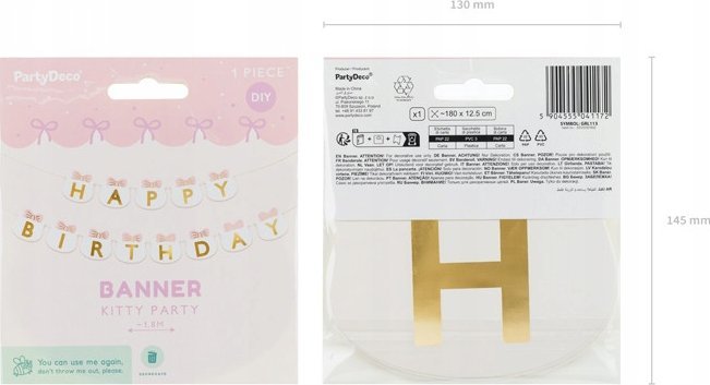 GRL113 Banner Happy Birthday Cat Mix 1 Piece - Approx. 4.7 in Height x 110 in Length Party Deco Party Supplies