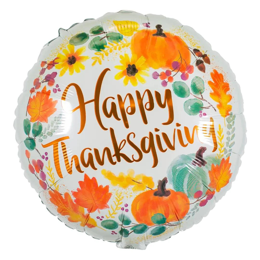 Celebrate the season with the Anagram Watercolor Happy Thanksgiving Round Balloon. Featuring a warm hand-painted style with pumpkins, leaves, and fall florals, this balloon adds an elegant touch to Thanksgiving tables, party décor, and harvest-themed events.